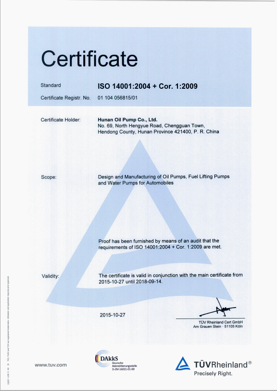 Environmental certificate