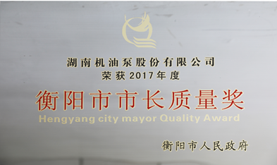 我公司榮獲2017年度 “衡陽市市長質量獎”榮譽稱號