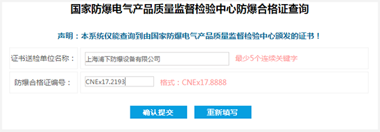 沈陽頒發的防爆合格證查詢網址:http://www.fbdqhy.com/hgz_search.aspx