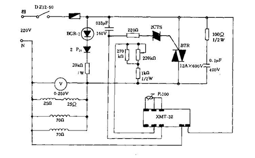 下圖為BGX-2080型防爆真空干燥箱的電路原理圖如圖,箱體的溫度控制采用了智能電腦溫控,溫度信號的采集用鉑電阻,經(jīng)溫度控制器的放大與設定值進行比較得到PID控制信號,控制信號將控制可控硅的通斷,可控硅再控制加熱器加熱狀態(tài),達到自動控溫的目的。
